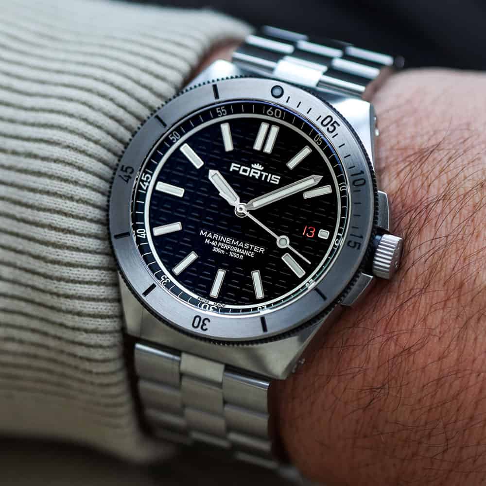 Willkommen zu dieser außergewöhnlichen Uhr, einer Fortis Marinemaster M-40 Gravity Black auf Block Bracelet F8120027.Focus Nachhaltigkeit: Das Gehäuse der Uhr besteht aus recyceltem Edelstahl und wurde somit gegenüber der traditionellen Fertigung, vollkommen neu definiert. Auch das Armband ist aus Edelstahl. Unter den vielfältigen Fortis Uhren ist dieser Marinemaster, eines der eindrucksvollsten Modelle.