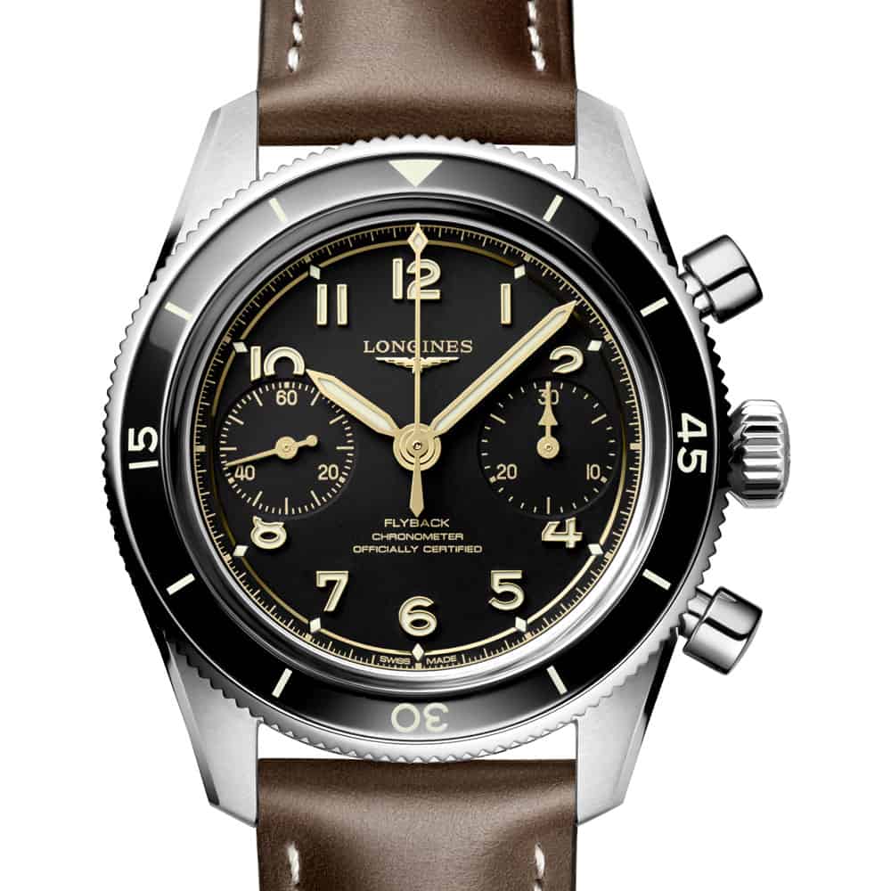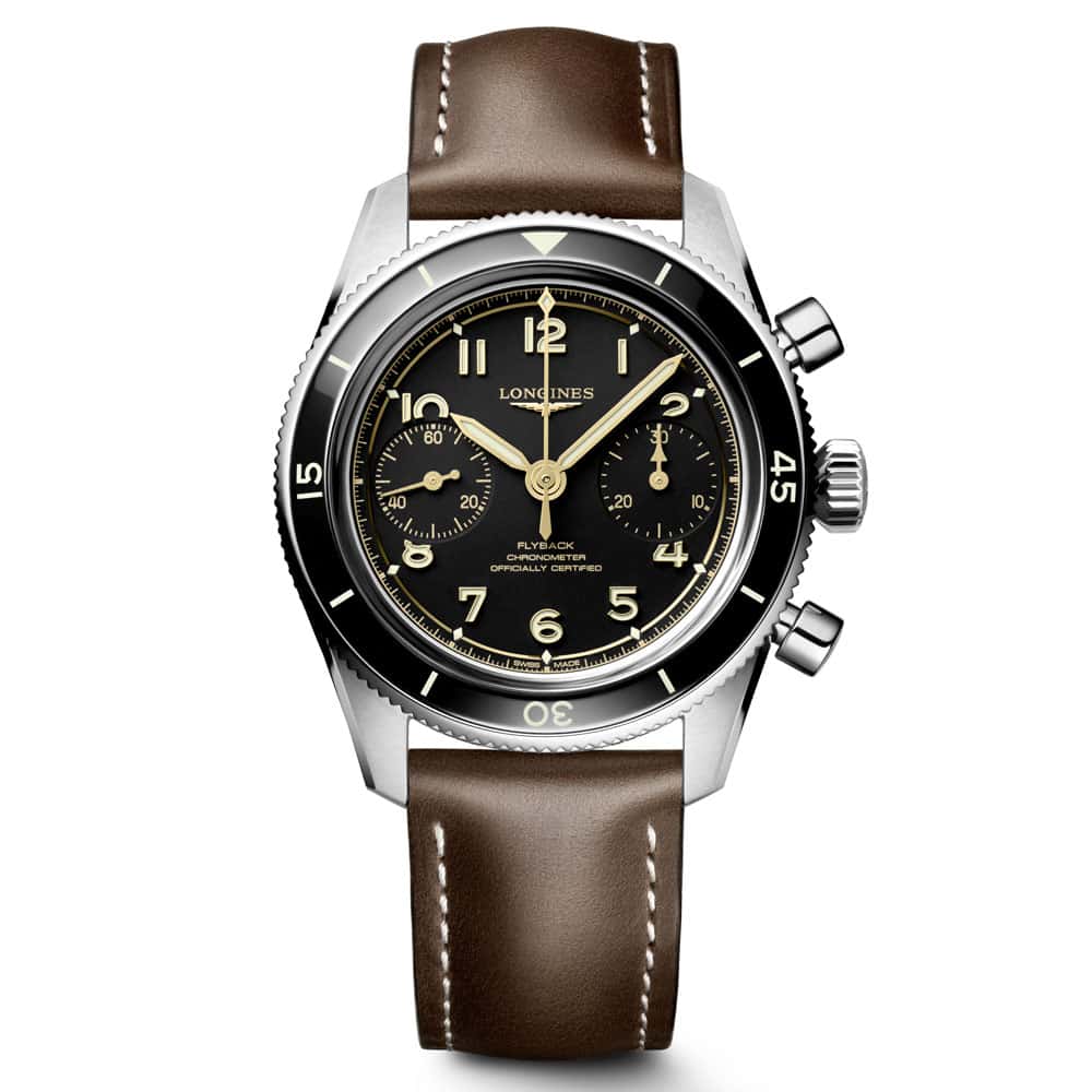Die Flyback-Funktion, ein zentrales Highlight dieser Uhr, wurde erstmals in den 1930er Jahren von Longines eingeführt. Am 16. Juni 1936 erhielt das Unternehmen das Patent für diese revolutionäre Komplikation – ein Meilenstein in der Geschichte der Pilotenuhren. Die Flyback-Technologie ermöglicht es, aufeinanderfolgende Zeitintervalle effizient zu messen – ideal für die Navigation in der Luftfahrt und heute ein Symbol für technologische Raffinesse.